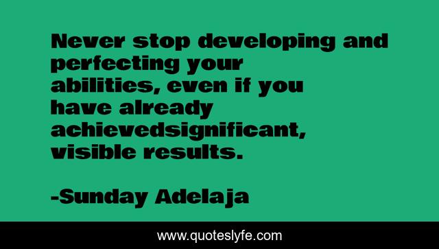 This page presents the quote "Never stop developing and perfecting your abilities, even if you have already achievedsignificant, visible results.". Author of this quote is Sunday Adelaja. This quote is about abilities, perfection, achieve, results,.