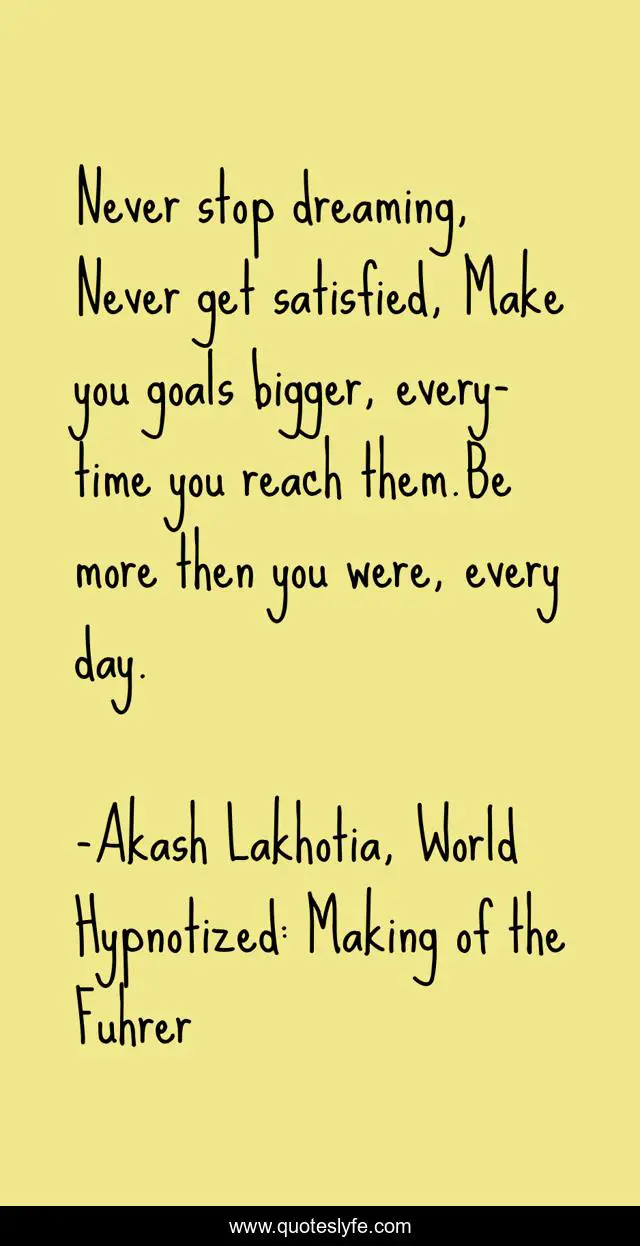 "Akash Lakhotia, World Hypnotized: Making of the Fuhrer Quotes." Quoteslyfe.com, 2025. Fri. 05 Dec. 2025. <https://www.quoteslyfe.com/quote/Never-stop-dreaming-Never-get-satisfied-Make-36772>.