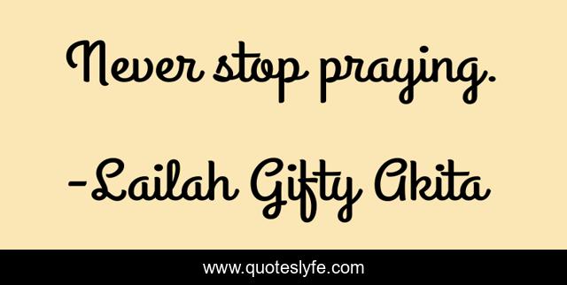"Lailah Gifty Akita Quotes." Quoteslyfe.com, 2025. Mon. 08 Dec. 2025. <https://www.quoteslyfe.com/quote/Never-stop-praying-209005>.