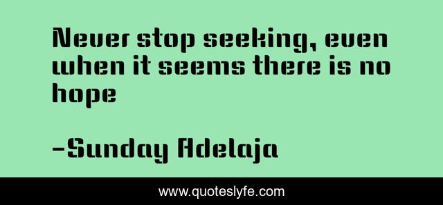 This page presents the quote "Never stop seeking, even when it seems there is no hope". Author of this quote is Sunday Adelaja. This quote is about prosperity, reality-of-life, wealth, success, seeking, money, riches, labor, stop,.