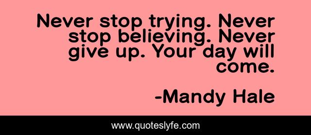 "Mandy Hale Quotes." Quoteslyfe.com, 2025. Sat. 06 Dec. 2025. <https://www.quoteslyfe.com/quote/Never-stop-trying-Never-stop-believing-Never-95599>.