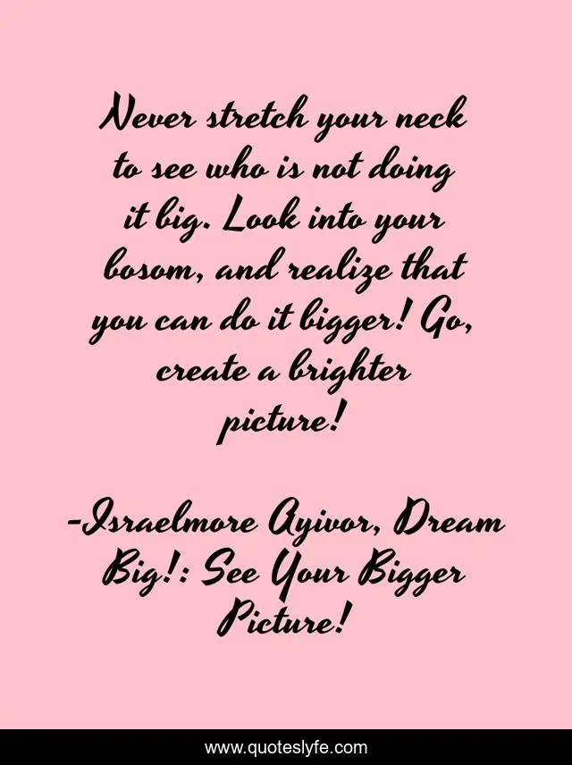 "Israelmore Ayivor, Dream Big!: See Your Bigger Picture! Quotes." Quoteslyfe.com, 2025. Tue. 09 Dec. 2025. <https://www.quoteslyfe.com/quote/Never-stretch-your-neck-to-see-who-129498>.