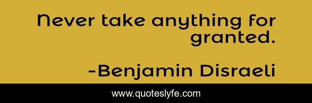 This page presents the quote "Never take anything for granted.". Author of this quote is Benjamin Disraeli. This quote is about take, anything,.