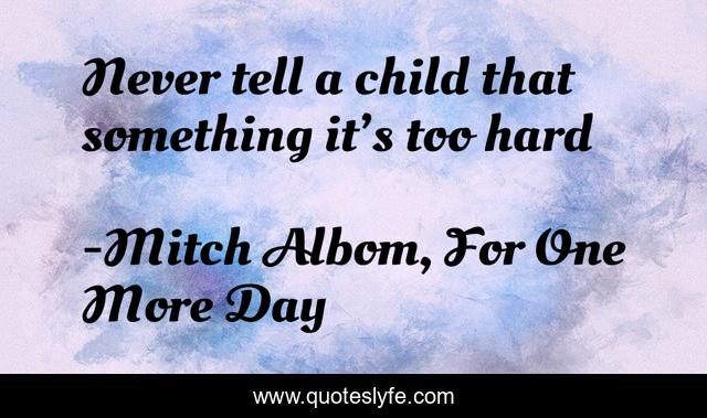 "Mitch Albom, For One More Day Quotes." Quoteslyfe.com, 2025. Fri. 05 Dec. 2025. <https://www.quoteslyfe.com/quote/Never-tell-a-child-that-something-it-100218>.