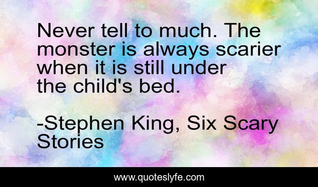 "Stephen King, Six Scary Stories Quotes." Quoteslyfe.com, 2025. Tue. 09 Dec. 2025. <https://www.quoteslyfe.com/quote/Never-tell-to-much-The-monster-is-156122>.