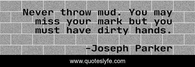 This page presents the quote "Never throw mud. You may miss your mark but you must have dirty hands.". Author of this quote is Joseph Parker. .