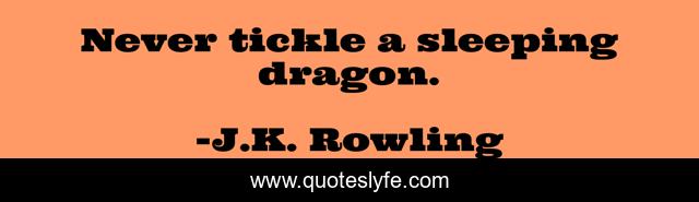 This page presents the quote "Never tickle a sleeping dragon.". Author of this quote is J.K. Rowling. .