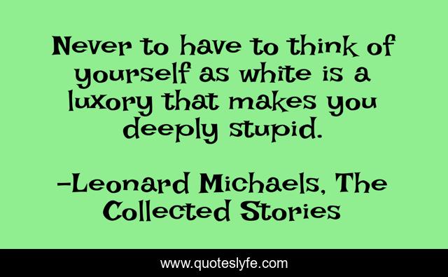 This page presents the quote "Never to have to think of yourself as white is a luxory that makes you deeply stupid.". Author of this quote is Leonard Michaels, The Collected Stories. .