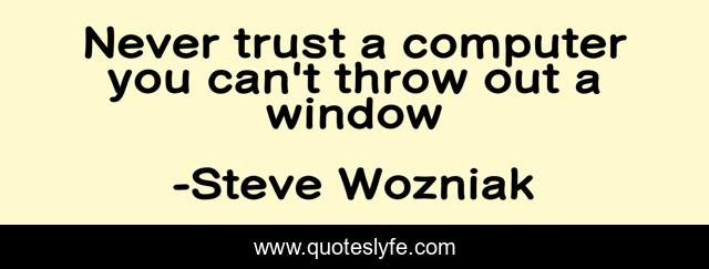 This page presents the quote "Never trust a computer you can't throw out a window". Author of this quote is Steve Wozniak. This quote is about aphorism, computer,.