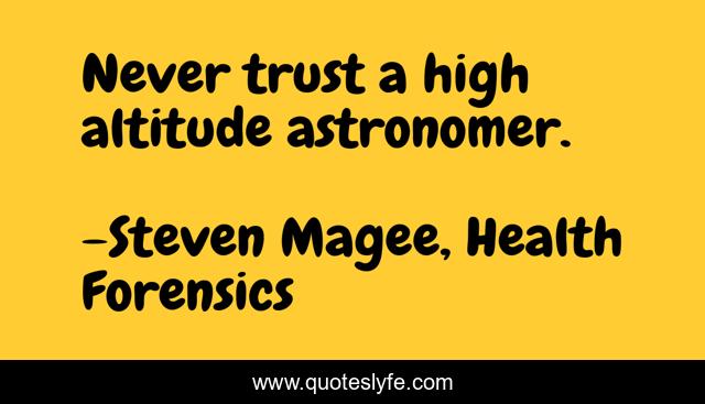 "Steven Magee, Health Forensics Quotes." Quoteslyfe.com, 2025. Mon. 08 Dec. 2025. <https://www.quoteslyfe.com/quote/Never-trust-a-high-altitude-astronomer-119500>.