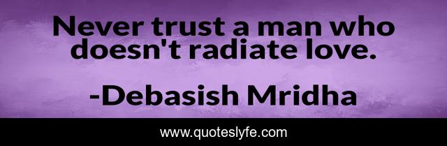 This page presents the quote "Never trust a man who doesn't radiate love.". Author of this quote is Debasish Mridha. This quote is about life, love, knowledge, inspirational, intelligence, philosophy, wisdom, quotes, affection,.