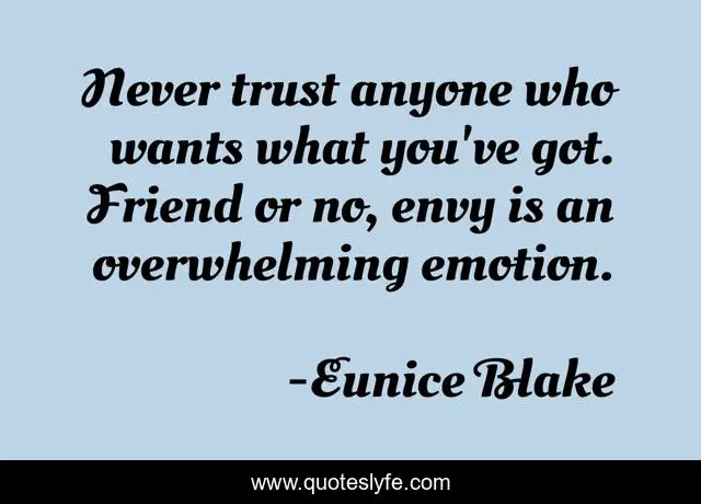 This page presents the quote "Never trust anyone who wants what you've got. Friend or no, envy is an overwhelming emotion.". Author of this quote is Eunice Blake. .
