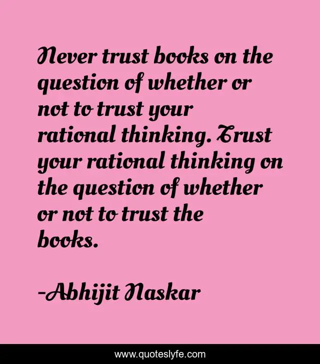 "Abhijit Naskar Quotes." Quoteslyfe.com, 2025. Sun. 07 Dec. 2025. <https://www.quoteslyfe.com/quote/Never-trust-books-on-the-question-of-98100>.