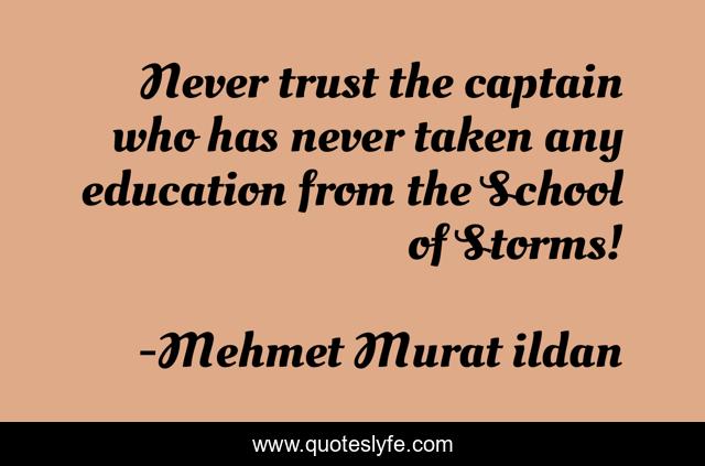 This page presents the quote "Never trust the captain who has never taken any education from the School of Storms!". Author of this quote is Mehmet Murat ildan. This quote is about captain, trust, storms, education, murat-ildan,.