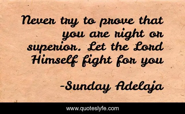 This page presents the quote "Never try to prove that you are right or superior. Let the Lord Himself fight for you". Author of this quote is Sunday Adelaja. This quote is about superior, right, prove, fight, try, lord,.