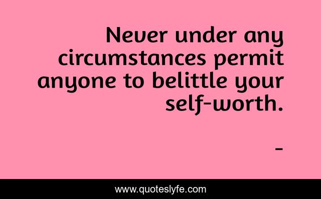 This page presents the quote "Never under any circumstances permit anyone to belittle your self-worth.". Author of this quote is . This quote is about belittling, belittlement, don-t-let-others-belittle-you, your-self-worth, edmond-mbiaka, your-true-worth,.