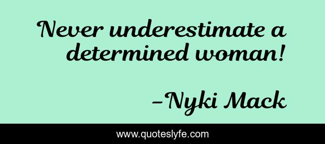 This page presents the quote "Never underestimate a determined woman!". Author of this quote is Nyki Mack. This quote is about nyki-mack, motivation, woman, stubborn, hopes-and-dreams, determined, underestimate, headstrong,.