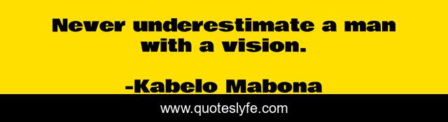 This page presents the quote "Never underestimate a man with a vision.". Author of this quote is Kabelo Mabona. This quote is about underestimate, vision,.