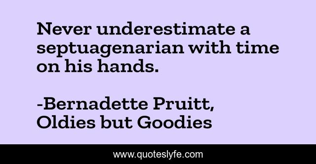 "Bernadette Pruitt, Oldies but Goodies Quotes." Quoteslyfe.com, 2025. Fri. 05 Dec. 2025. <https://www.quoteslyfe.com/quote/Never-underestimate-a-septuagenarian-with-time-on-149368>.