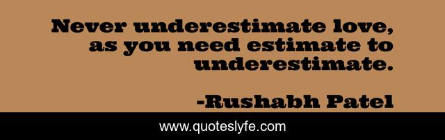 This page presents the quote "Never underestimate love, as you need estimate to underestimate.". Author of this quote is Rushabh Patel. This quote is about practical, practicality, love, sad, romance, affection,.