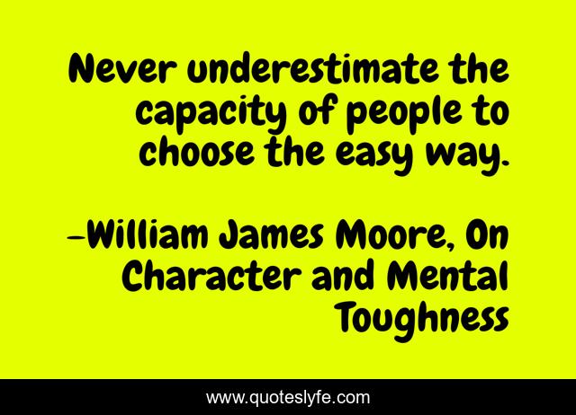 This page presents the quote "Never underestimate the capacity of people to choose the easy way.". Author of this quote is William James Moore, On Character and Mental Toughness. This quote is about lazy, laziness, character, leadership,.