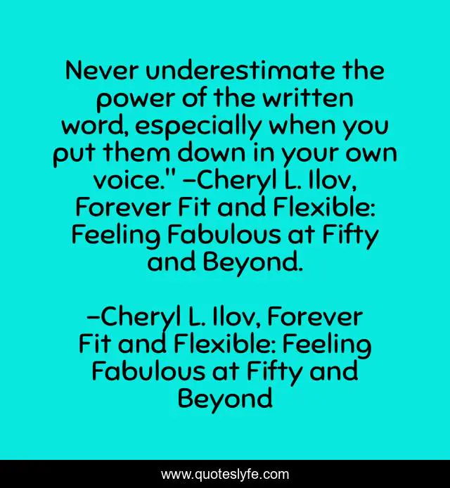 "Cheryl L. Ilov, Forever Fit and Flexible: Feeling Fabulous at Fifty and Beyond Quotes." Quoteslyfe.com, 2025. Sun. 07 Dec. 2025. <https://www.quoteslyfe.com/quote/Never-underestimate-the-power-of-the-written-214914>.