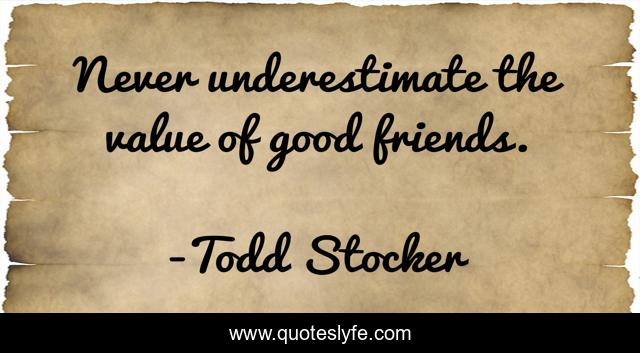 "Todd Stocker Quotes." Quoteslyfe.com, 2025. Fri. 05 Dec. 2025. <https://www.quoteslyfe.com/quote/Never-underestimate-the-value-of-good-friends-83775>.