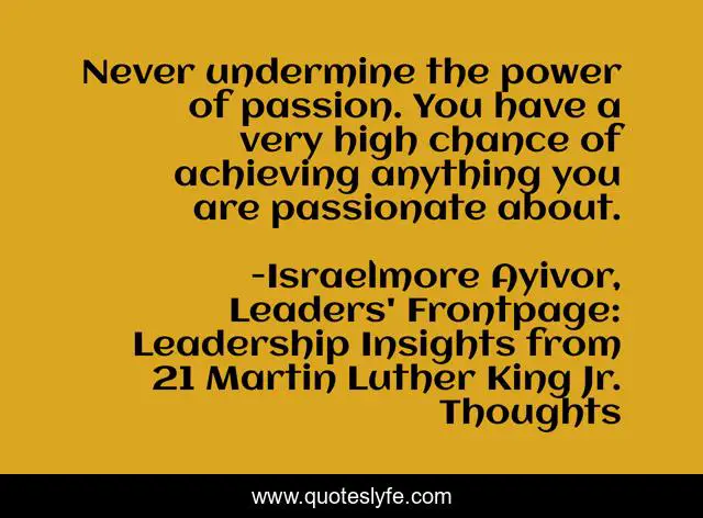 "Israelmore Ayivor, Leaders' Frontpage: Leadership Insights from 21 Martin Luther King Jr. Thoughts Quotes." Quoteslyfe.com, 2025. Mon. 29 Dec. 2025. <https://www.quoteslyfe.com/quote/Never-undermine-the-power-of-passion-You-64036>.