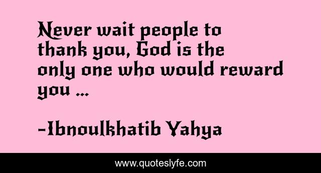 This page presents the quote "Never wait people to thank you, God is the only one who would reward you …". Author of this quote is Ibnoulkhatib Yahya. This quote is about patience, forgiveness, thankful, inspirational, enthusiasm,.