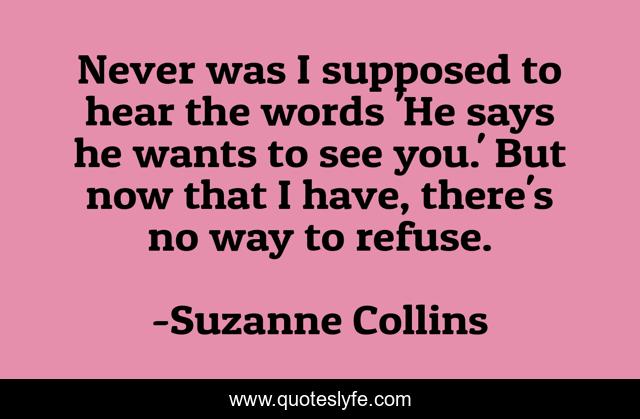 This page presents the quote "Never was I supposed to hear the words 'He says he wants to see you.' But now that I have, there's no way to refuse.". Author of this quote is Suzanne Collins. This quote is about love, affection,.