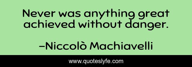 This page presents the quote "Never was anything great achieved without danger.". Author of this quote is Niccolò Machiavelli. This quote is about daring, success, risk,.
