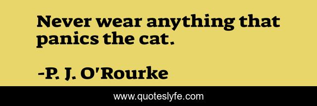 "P. J. O'Rourke Quotes." Quoteslyfe.com, 2025. Sat. 06 Dec. 2025. <https://www.quoteslyfe.com/quote/Never-wear-anything-that-panics-the-cat-307223>.