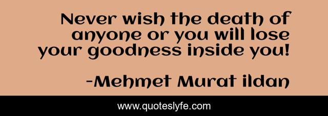 This page presents the quote "Never wish the death of anyone or you will lose your goodness inside you!". Author of this quote is Mehmet Murat ildan. .