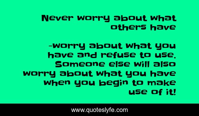 "worry about what you have and refuse to use. Someone else will also worry about what you have when you begin to make use of it! Quotes." Quoteslyfe.com, 2025. Sat. 06 Dec. 2025. <https://www.quoteslyfe.com/quote/Never-worry-about-what-others-have-129456>.