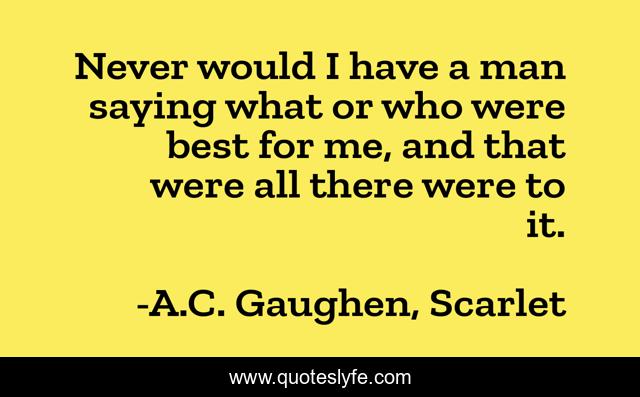 This page presents the quote "Never would I have a man saying what or who were best for me, and that were all there were to it.". Author of this quote is A.C. Gaughen, Scarlet. .