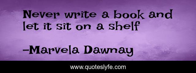 This page presents the quote "Never write a book and let it sit on a shelf". Author of this quote is Marvela Dawnay. This quote is about knowledge, family, patterns, action, education, inspiration,.