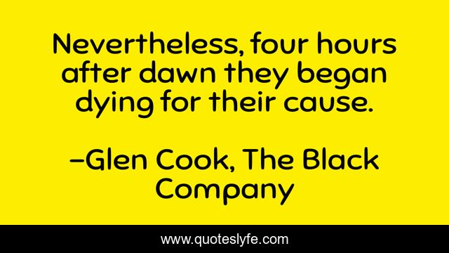 This page presents the quote "Nevertheless, four hours after dawn they began dying for their cause.". Author of this quote is Glen Cook, The Black Company. .