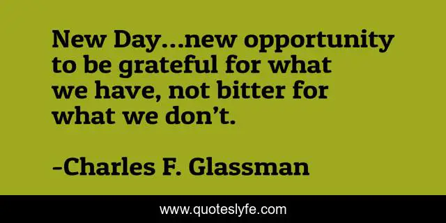 "Charles F. Glassman Quotes." Quoteslyfe.com, 2025. Mon. 08 Dec. 2025. <https://www.quoteslyfe.com/quote/New-Day-new-opportunity-to-be-grateful-231664>.