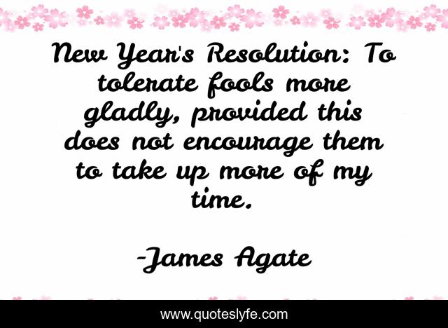 This page presents the quote "New Year's Resolution: To tolerate fools more gladly, provided this does not encourage them to take up more of my time.". Author of this quote is James Agate. This quote is about new, fools, time,.