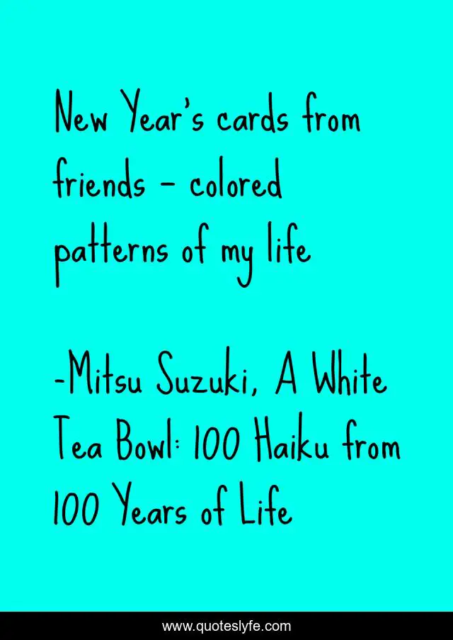 "Mitsu Suzuki, A White Tea Bowl: 100 Haiku from 100 Years of Life Quotes." Quoteslyfe.com, 2025. Sat. 06 Dec. 2025. <https://www.quoteslyfe.com/quote/New-Year-s-cards-from-friends-colored-126813>.