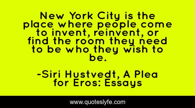 This page presents the quote "New York City is the place where people come to invent, reinvent, or find the room they need to be who they wish to be.". Author of this quote is Siri Hustvedt, A Plea for Eros: Essays. .