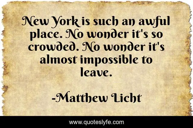 "Matthew Licht Quotes." Quoteslyfe.com, 2025. Sat. 06 Dec. 2025. <https://www.quoteslyfe.com/quote/New-York-is-such-an-awful-place-249879>.