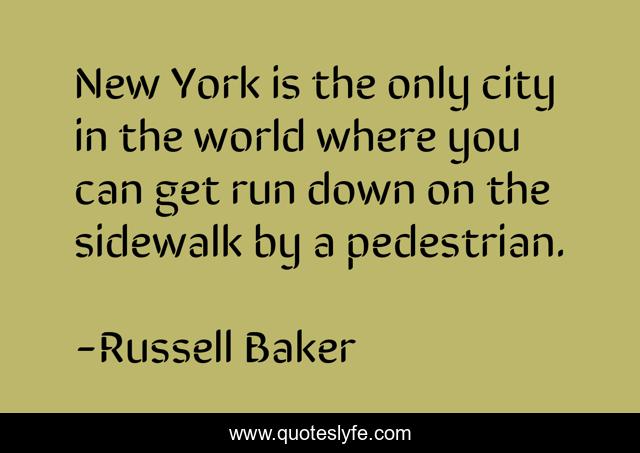 This page presents the quote "New York is the only city in the world where you can get run down on the sidewalk by a pedestrian.". Author of this quote is Russell Baker. .