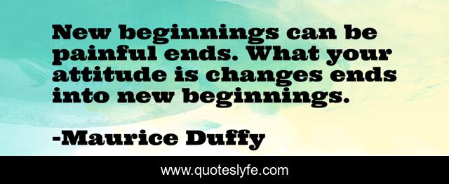 This page presents the quote "New beginnings can be painful ends. What your attitude is changes ends into new beginnings.". Author of this quote is Maurice Duffy. This quote is about motivation, behaviour, attitude, leadership, inspirational, enthusiasm, change, mindset,.