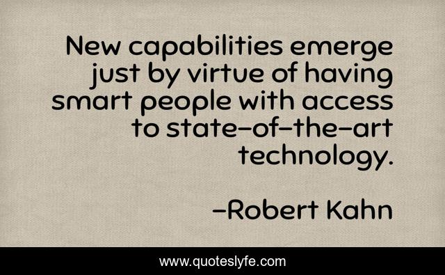 This page presents the quote "New capabilities emerge just by virtue of having smart people with access to state-of-the-art technology.". Author of this quote is Robert Kahn. This quote is about capability, smart-people, technology, cutting-edge, innovation,.