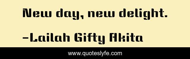 This page presents the quote "New day, new delight.". Author of this quote is Lailah Gifty Akita. This quote is about delight, inspiring, new-day,.