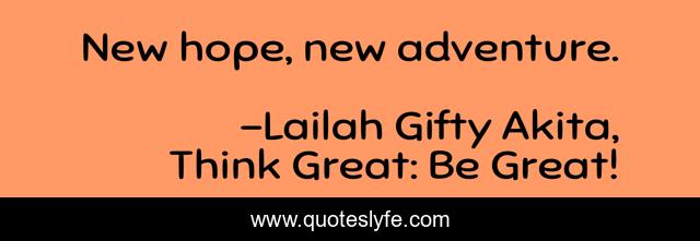 "Lailah Gifty Akita, Think Great: Be Great! Quotes." Quoteslyfe.com, 2025. Mon. 08 Dec. 2025. <https://www.quoteslyfe.com/quote/New-hope-new-adventure-151761>.