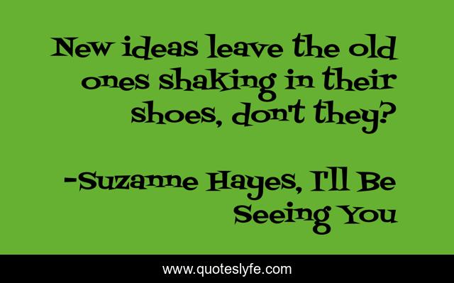 This page presents the quote "New ideas leave the old ones shaking in their shoes, don't they?". Author of this quote is Suzanne Hayes, I'll Be Seeing You. This quote is about progress, growth,.