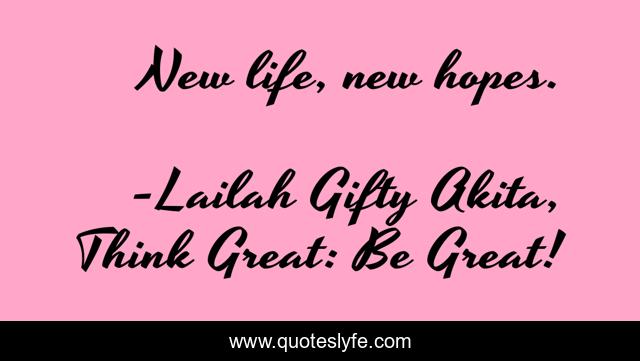 "Lailah Gifty Akita, Think Great: Be Great! Quotes." Quoteslyfe.com, 2025. Mon. 08 Dec. 2025. <https://www.quoteslyfe.com/quote/New-life-new-hopes-85163>.