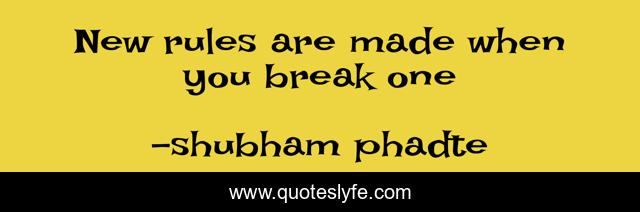 This page presents the quote "New rules are made when you break one". Author of this quote is shubham phadte. This quote is about break-rules, rules,.